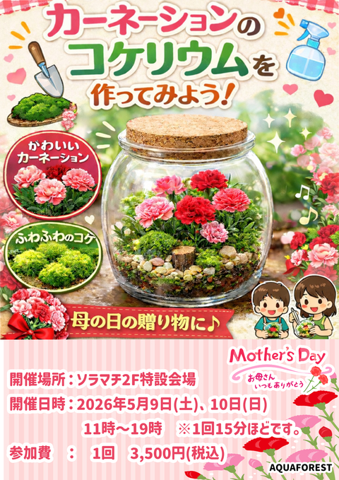 研討會“讓我們制作康乃馨苔蘚”AQUA FOREST1F イーストヤード 11番地 -