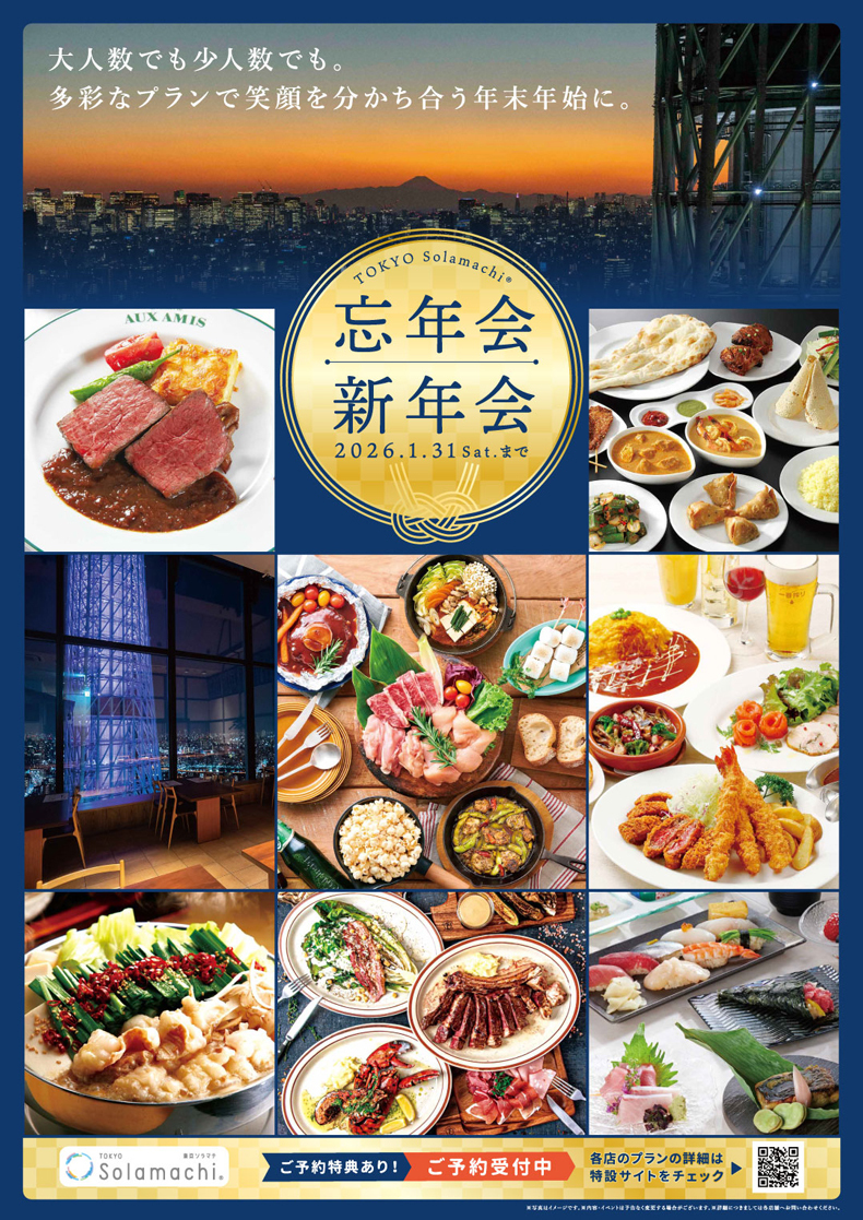 東京晴空街的餐廳提供非常適合年末和新年聚會的方案,為年末年初增添色彩。