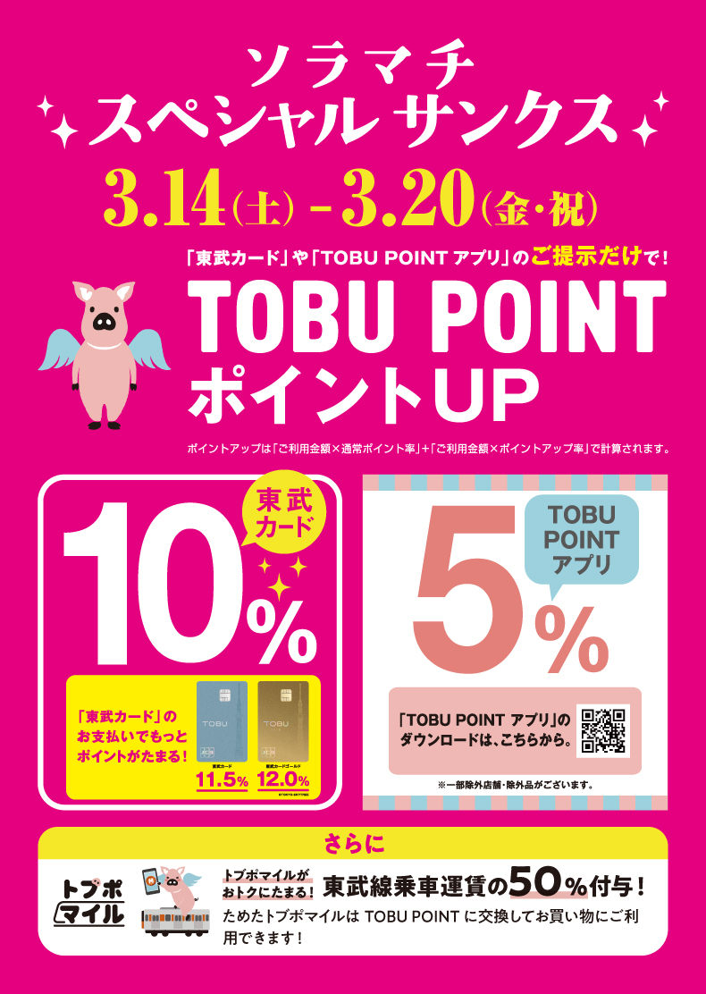 TOBU POINT 積分提高!晴空街特別鳴謝