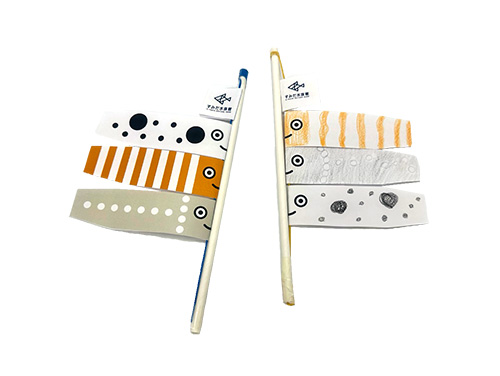 使用空容器和紙杯、用過的郵票和遮蔽膠帶,制作鯉魚旗。