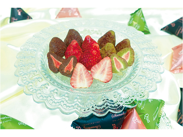 將整顆士多啤梨浸入巧克力,融合各種美味的甜點。