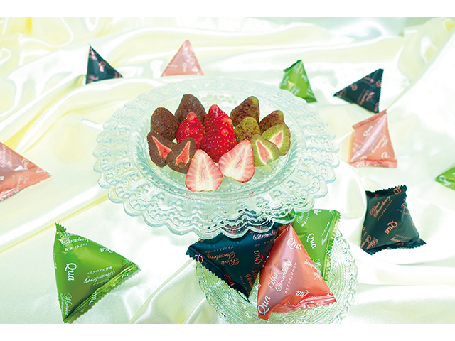 將整顆士多啤梨浸入巧克力,融合各種美味的甜點。