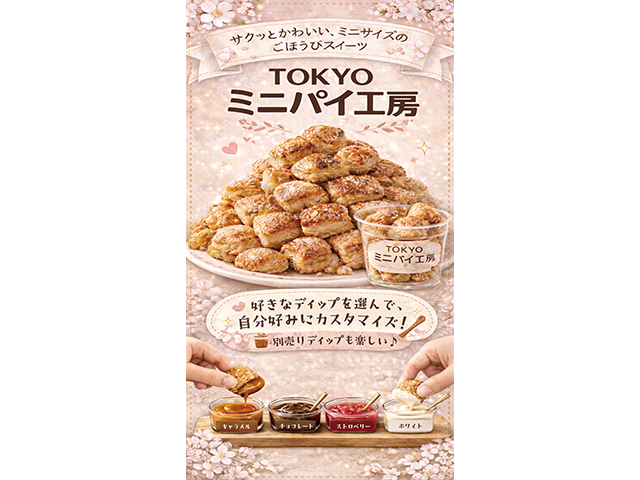 “首次登場”派面料本身的香味作為主角,為您提供充滿樂趣的浸漬風格。輕松挑選,令人愉快的松脆新感覺迷你派。