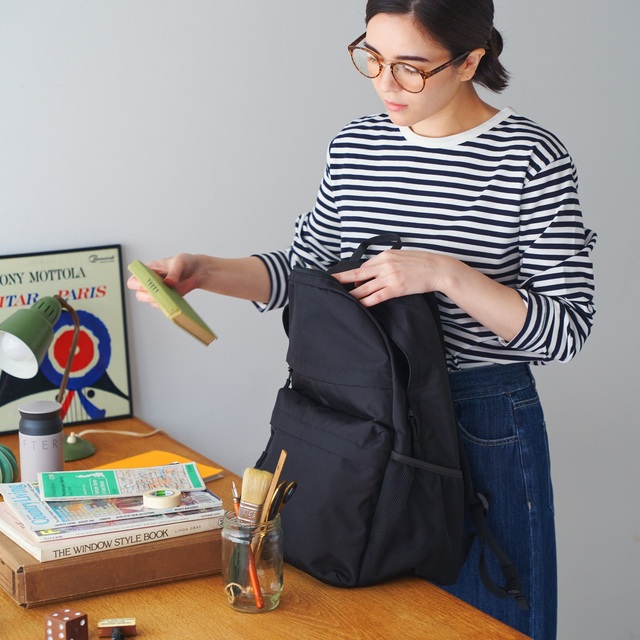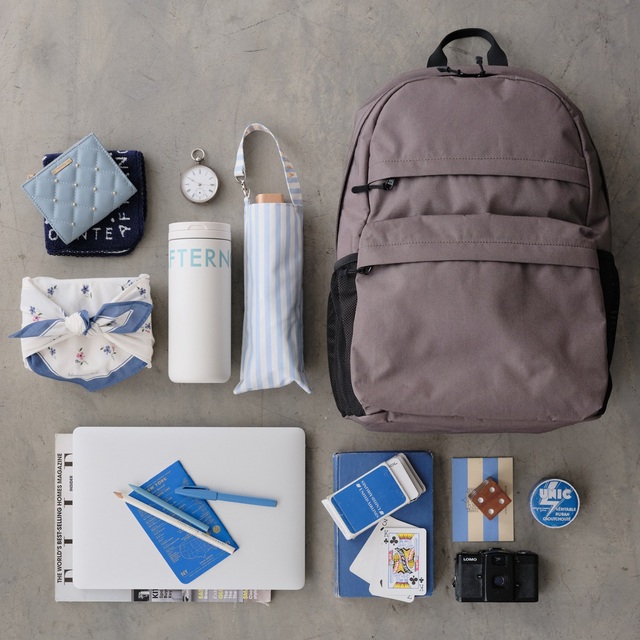 後背包表面的口袋可收納定期券等想快速取出的物品,兩側的網眼口袋也可當作飲料架使用。