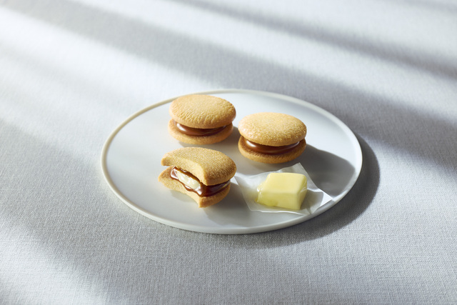 松脆輕盈的油酥蛋糕間溢出黏稠柔軟的焦糖黃油,奢華的三明治曲奇。