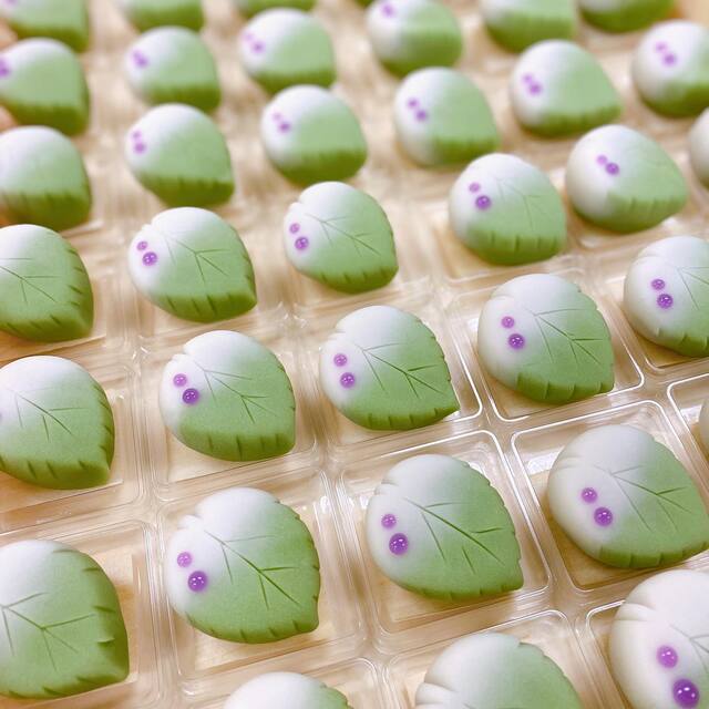 點心“紫式部”:挽茶色練切:餡心豆沙