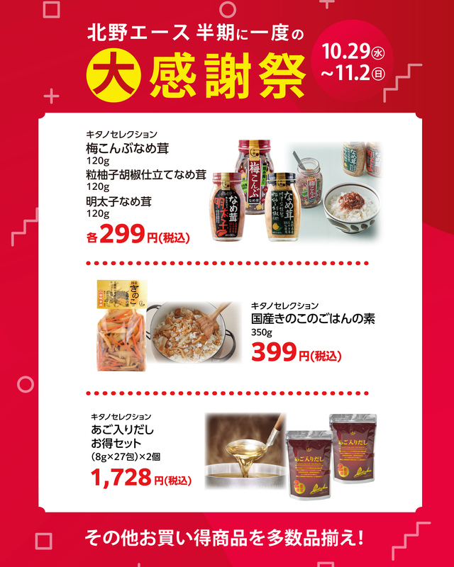 KITANOACE感謝您從10/29(星期三)到11/2(星期日)一直以來的惠顧,
