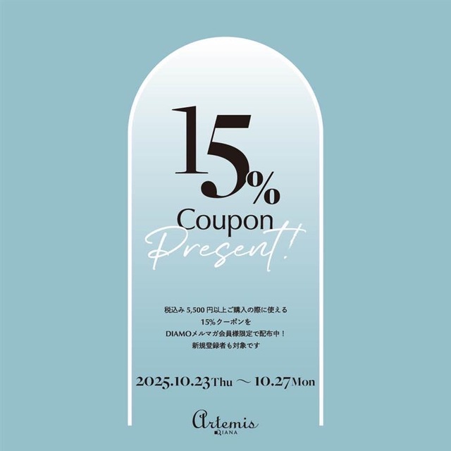 10月23日 (星期四)~10月27日 (星期一)的5天內,僅限DIAMO會員購買5,500日元 (含稅) 以上即可使用,發放15%優惠券♡
