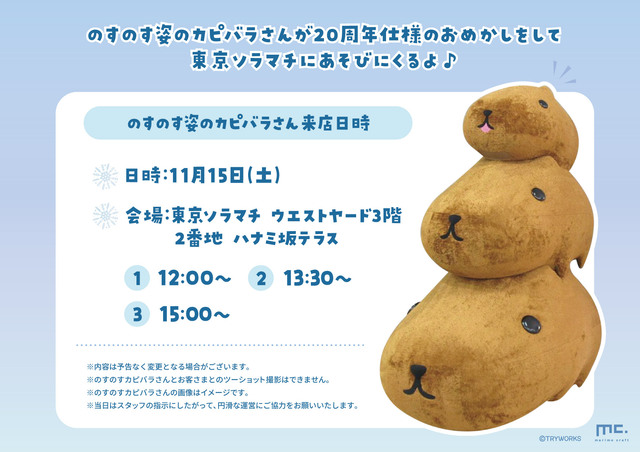 由於每年都很受歡迎,水豚的限時商店今年將於東京晴空街年再次開業!