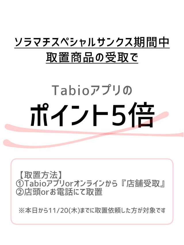 晴空街特別感謝期間,您將獲得 Tabio 應用程序 5 倍的積分,用於接收預訂產品! !