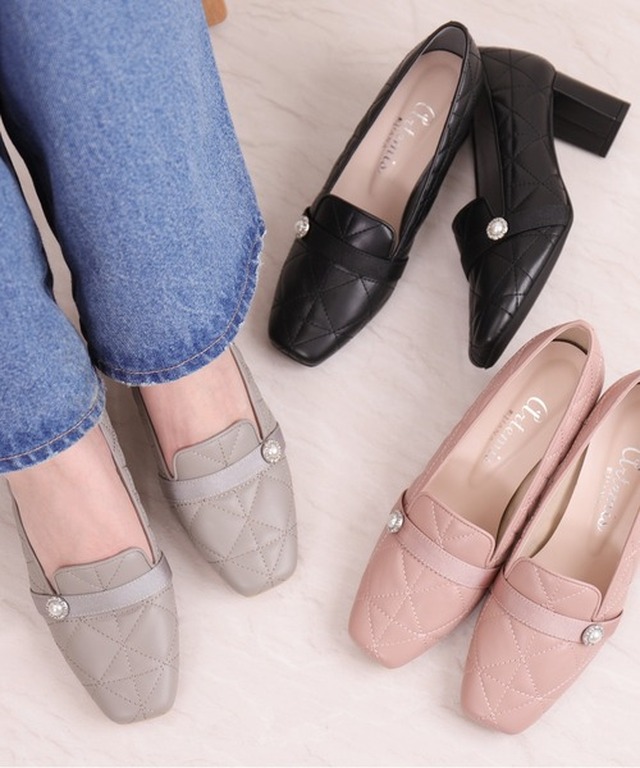 這款女式淺口無扣無帶皮鞋採用蓬松的絎縫加工,極具女人味。