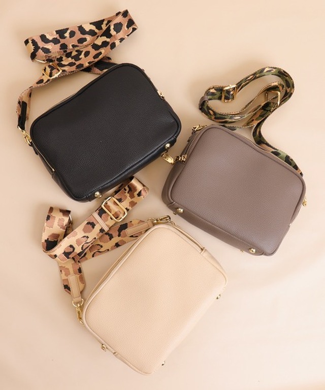 附贈的肩帶有2種。可成為重點的豹紋提花,與本體同色的簡單肩帶♪