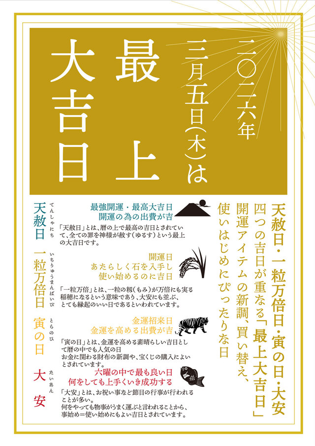 3/5是開運吉日1年只會來幾次 【最上大吉日】