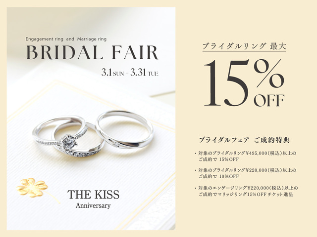 從 2026 年 3 月 1 日(星期日)到 3 月 31 日(星期二),我們為報名新娘戒指的顧客提供超值優惠。
