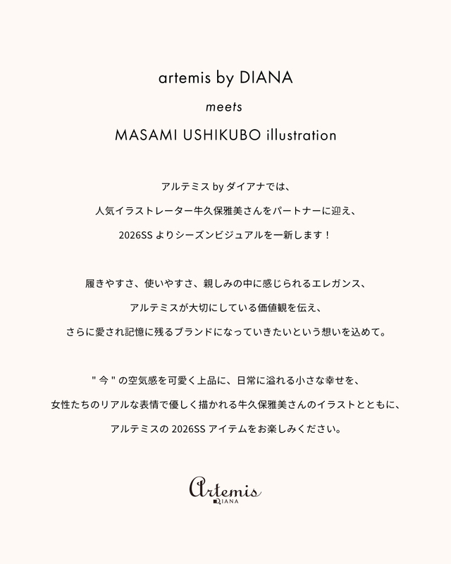 artemis by DIANA將邀請人氣插畫家牛久保正美成為合作夥伴,並延續2026SS的季節視覺效果!
