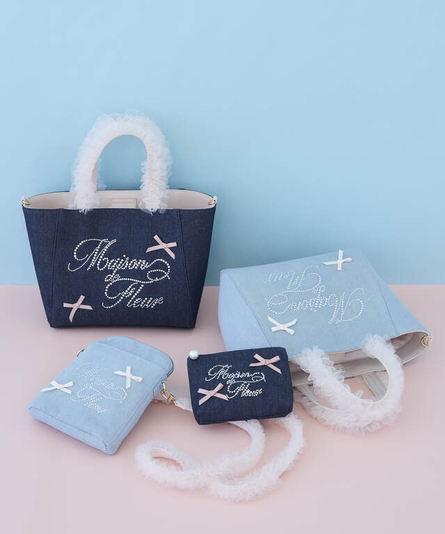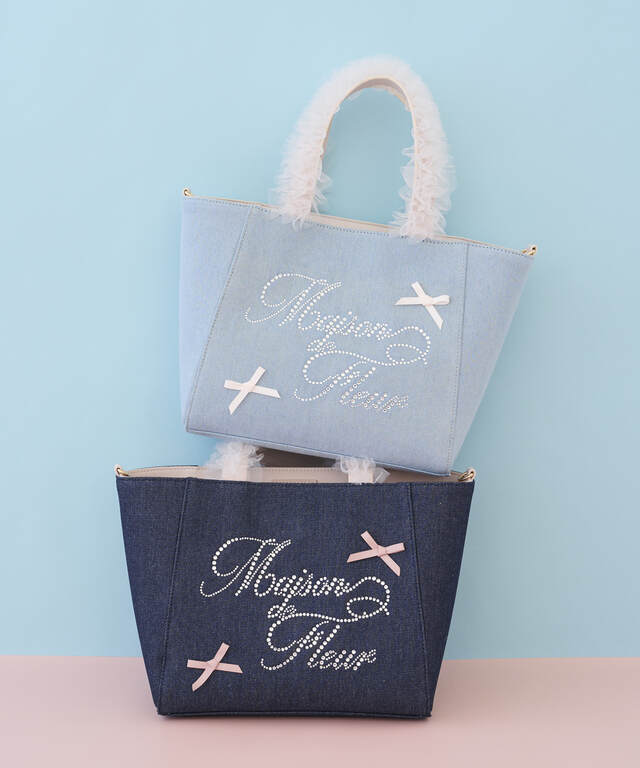 ☑チュールハンドルラインストーンデニムトート