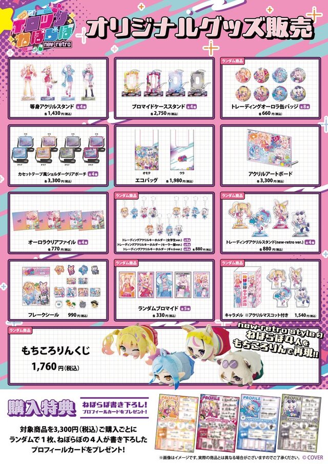 屆時將出售印有「Hololive」五期生四位成員——桃鈴寧寧、小丸波爾卡、雪花拉米和獅子牡丹——全新插畫的周邊商品,並設有拍照點!