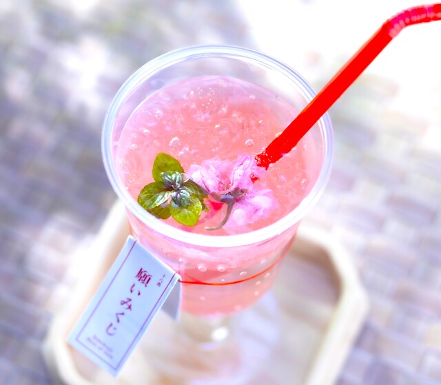 微甜的櫻花糖漿搭配細膩碳酸的春色飲品。