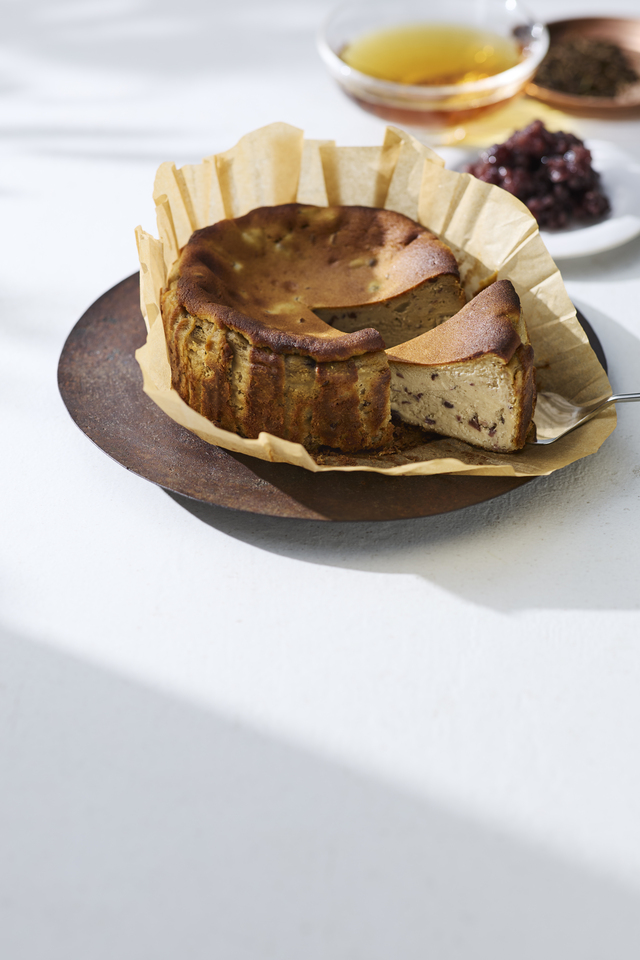 這款「日式」起司蛋糕完美融合了香氣撲鼻的烤綠茶和甜度適中的紅豆沙。