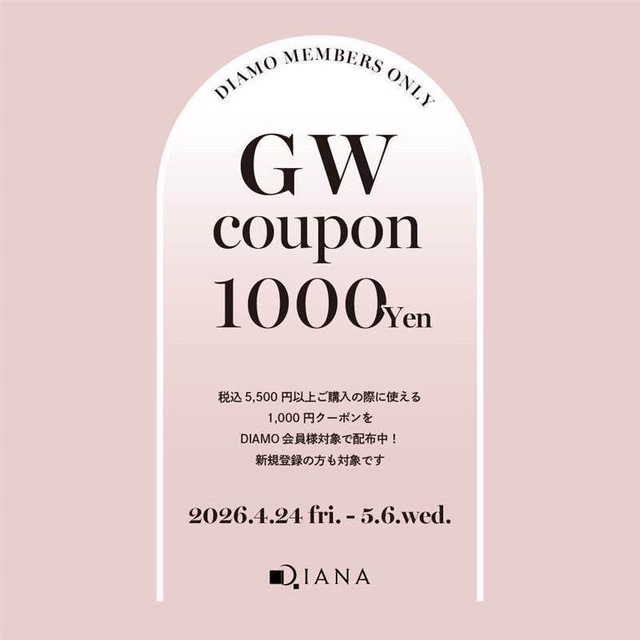 ⭐︎ DIAMO會員黃金周1,000日元優惠券⭐︎
