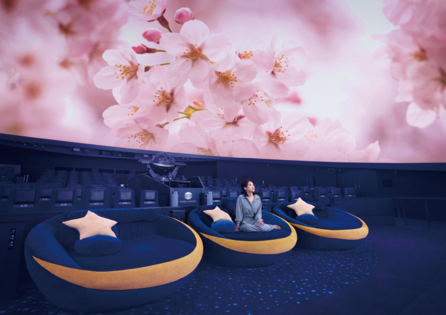正片上映前的等待時間,上映可以看到一望無際盛開的櫻花的歡迎影像。在被櫻花色包圍的天象儀穹頂舒適地享受賞花的心情!