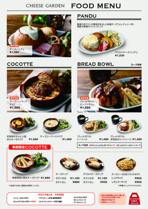 餐廳&咖啡館〈CHEESE GARDEN〉平日限量早晨咖啡館菜單列表CHEESE GARDEN2026年3月18日 ~ 2026年5月18日 -