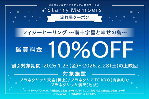 展示&娛樂公開紀唸10% OFF『斐濟治愈~南十字星與幸福之島~』Konica Minolta Planetarium Tenku in TOKYO SKY TREE TOWN®2026年1月23日 ~ 2026年2月28日 -