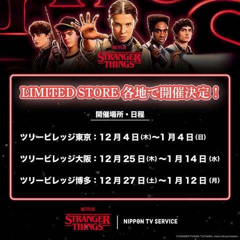 雜貨&時尚決定舉辦!!【NETFLIX STRANGER THINGS LIMITED STORE】Tree Village ENTERTAINMENT SHOP2025年12月4日 ~ 2026年1月4日 -