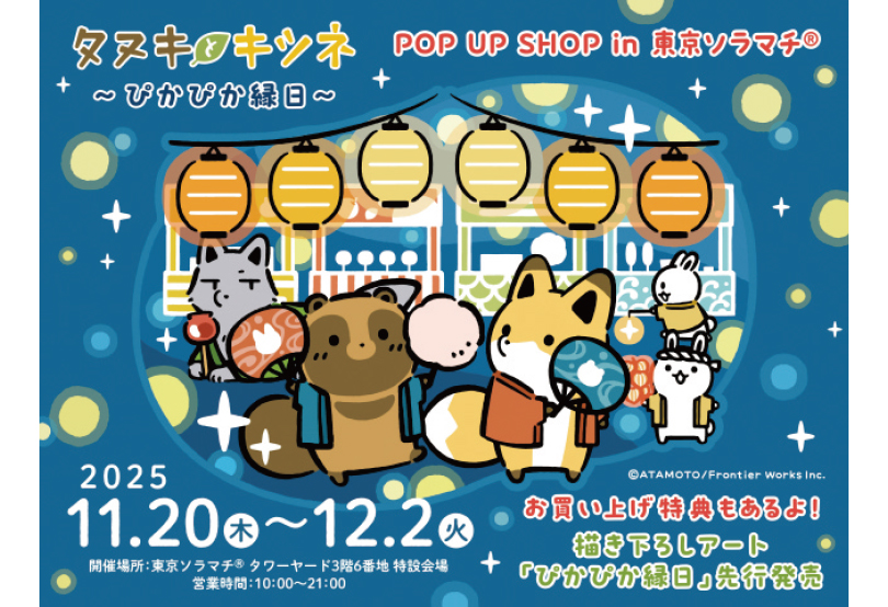 今年也舉辦貍貓和狐貍的期間限定商店!這次的主題是“閃閃發光的廟會”。為您準備了先行發售的商品,以及根據您的購買情況的新奇商品。